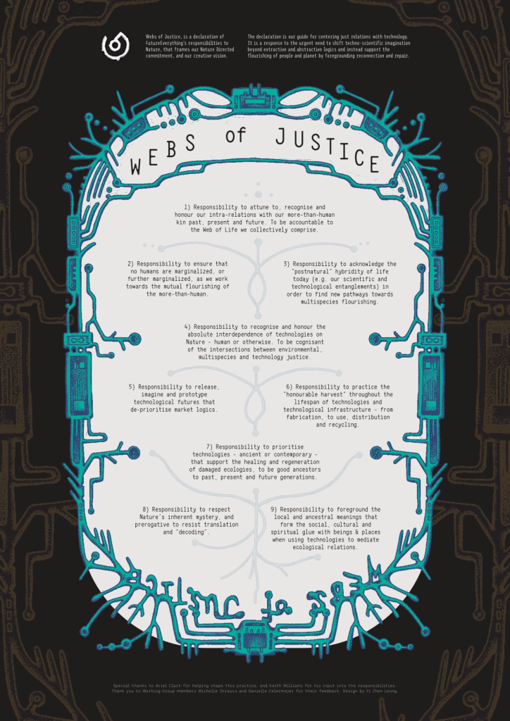 Webs of Justice, is a declaration of FutureEverything’s responsibilities to Nature, that frames our Nature Directed commitment, and our creative vision.